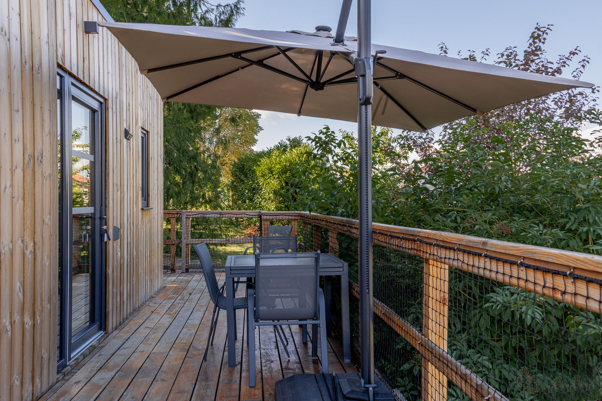 This 40 m² lodge, designed to accommodate up to 4 people, offers two bedrooms and one bathroom. Adapted for persons with reduced mobility, it also features an adjacent parking space. A harmonious getaway between comfort and nature, enhanced by delicious jarred meals from our local caterer for total relaxation.