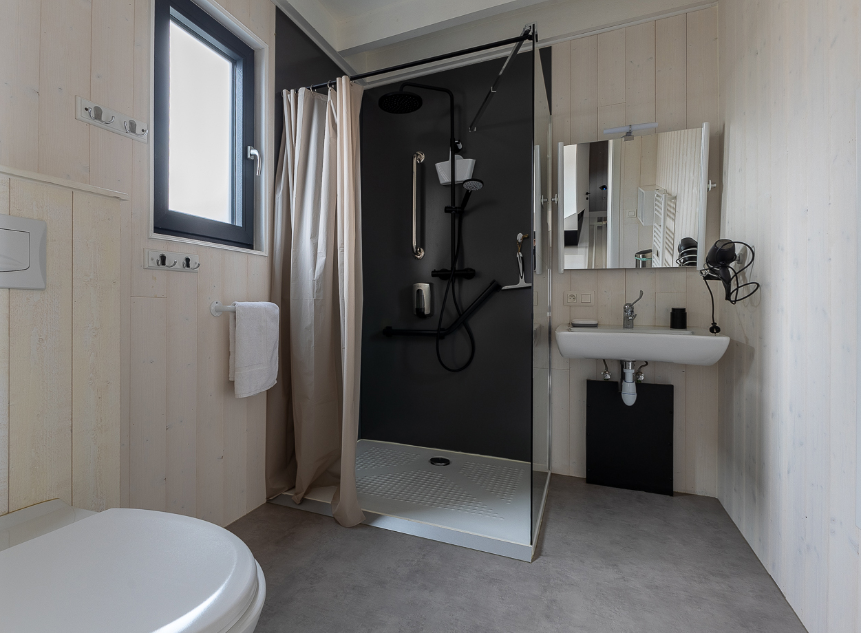 • Lodge with bathroom equipped with a shower with thermostatic mixer